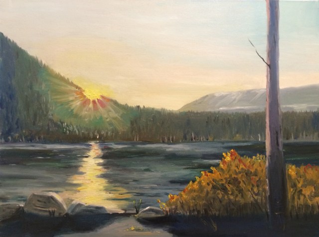 A Yosemite Lake at Sunset I’ve been so hesitant to try to paint the sunset. The light at that time of day is so complicated and different that what I’m used to…. Nevertheless, I gave it a shot, and I’m not displeased. Share this: Share on X (Opens in new window) X Share on Facebook (Opens in new window) Facebook Like Loading...