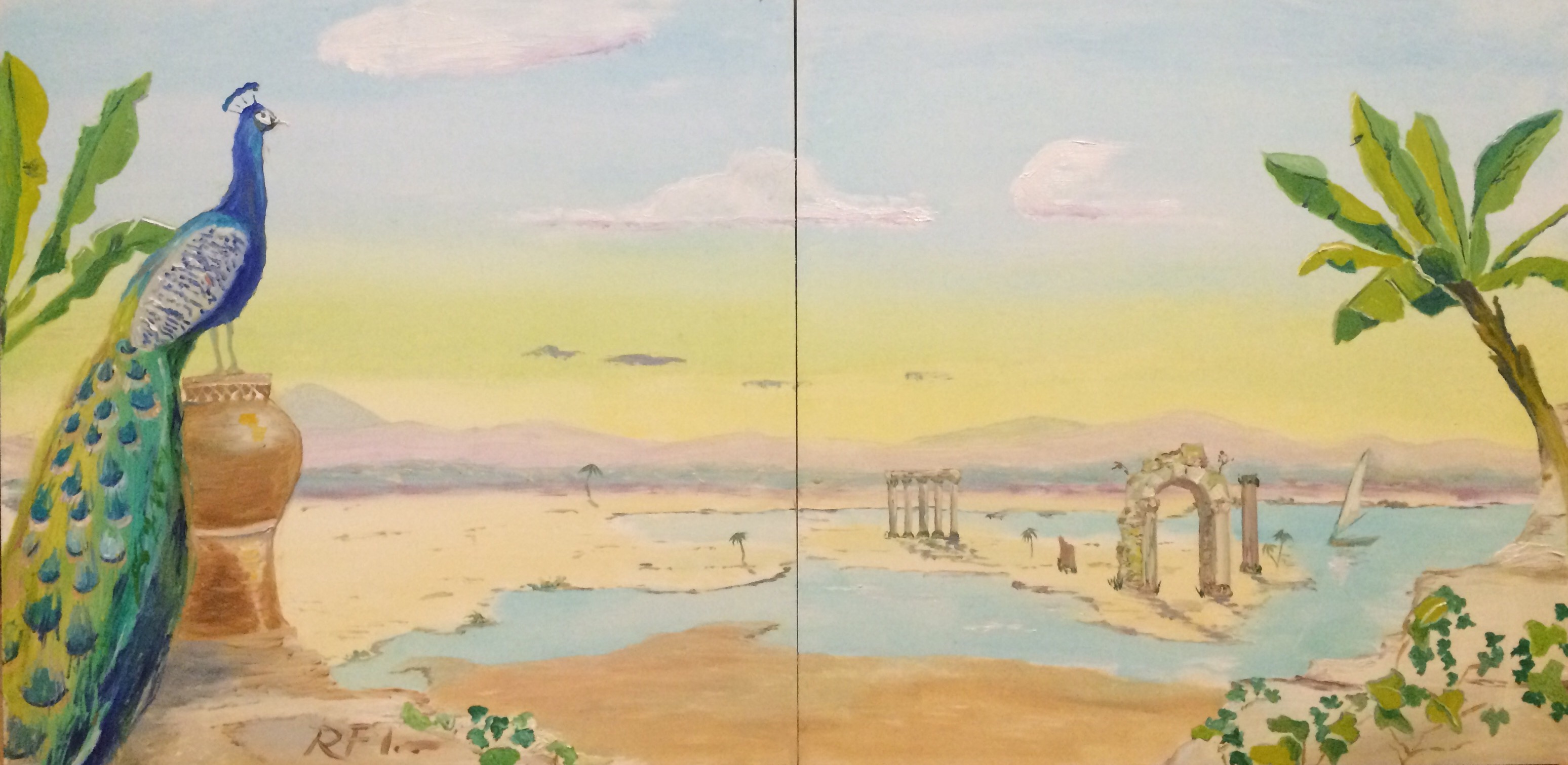 Trompe L’Oeil Mural I’ve recently become obsessed with the idea of giant trompe l’oeil panels in our dining room. I’ve done several designs in watercolor, but this is my first draft in oil. Share this: Click to share on X (Opens in new window) X Click to share on Facebook (Opens in new window) Facebook Like Loading...