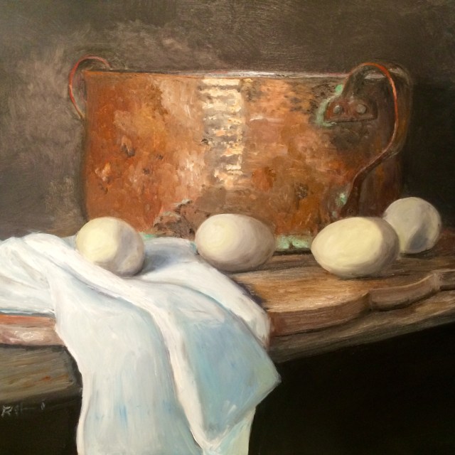 Copper Pot with Eggs and Linen